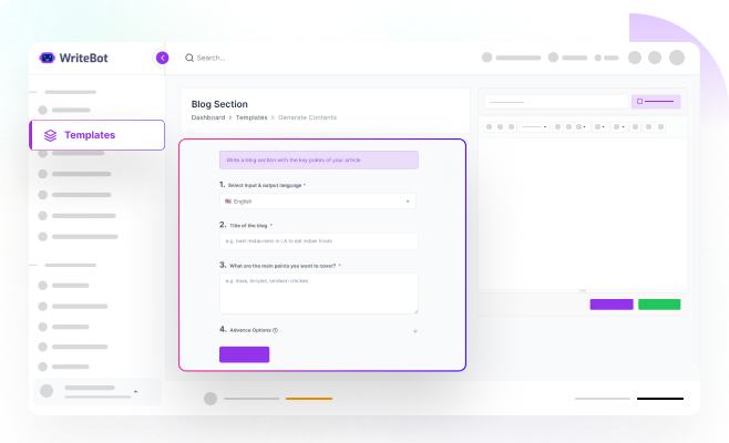 - Write or select WriteBot prebuilt prompts